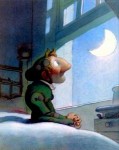 Így aztán Pancsinelló hazament. Leült az ablak elé, és nézte, hogyan rohangálnak ide-oda a manók, csillagokat és szürke pontokat osztogatva egymásnak. „Ez így nincs rendjén” – suttogta, és elhatározta, hogy elmegy Élihez.